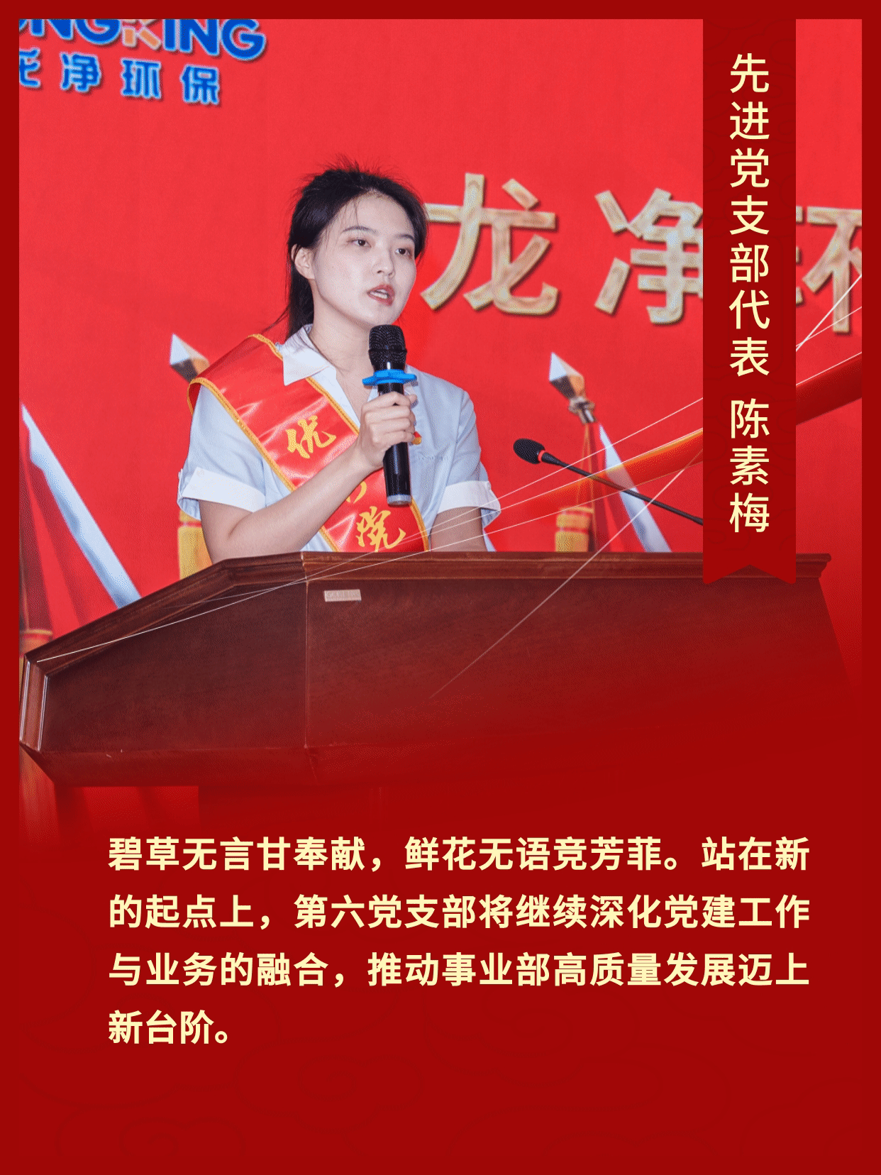 为庆祝中国共产党成立104周年,弘扬伟大建党精神,树立榜样,进一步激发基层党组织活力,龙净环保党委召开“七一”党员表彰大会。龙岩市委社会工作部副部长黄林英莅临大会并讲话,龙净环保党委书记罗如生作会议发言,党委副书记、纪委书记廖伯寿带领全体党员重温入党誓词,180余名党员现场参会。